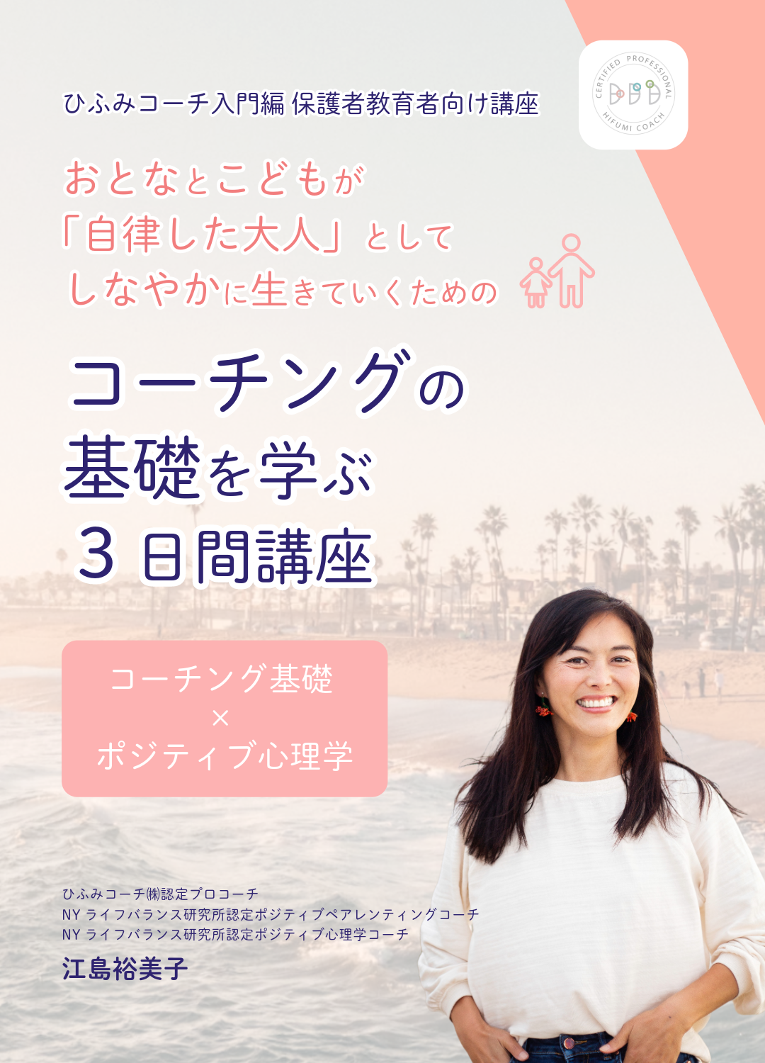 だからこそ、私はこの講座を通して、こどもと関わる方が、まず自分自身をありのままに受け入れ、自分の強みや可能性を信じ、自分で考え主体的に行動できるようになる支援をしたいと思っています。それにより、こどもが「自律的な大人」になる支援が自然と出来るようになります。
