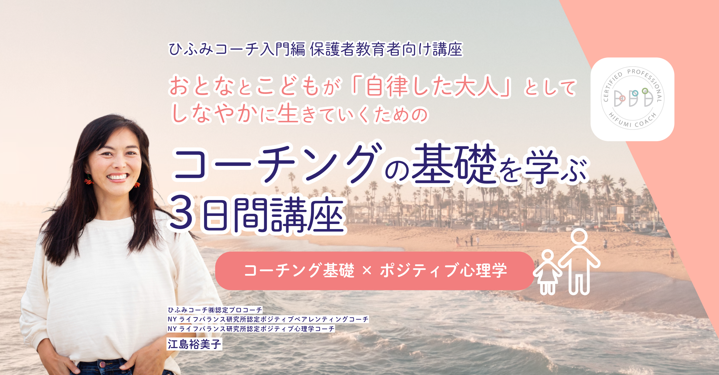 「この状況を根本から変えて、家族と幸せになりたい!」という強い思いで、ポジティブ心理学とコーチングを学んだことがきっかけで、「幸せは、自分の内側から創り出せる」ということを実感するようになりました。学びと実践で、夫婦関係が劇的に改善、子育てが楽しくなり、キャリアチェンジも叶いました。